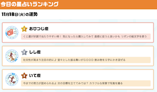 今日から寒くなる予報でしたが、今朝は意外と暖かく感じます。ここから気温が上がらないと正木さんが言っていました。さてそのおはよう朝日ですの占いで、私見事1位になっていました。うれしいですねえ〜。気分いいです。でも調子に乗りすぎないように気をつけます。え〜っと今日は「くじ運が好調で当たりやすい時! 気になったら購入してみて 直感に従うと良いかも リボンの絵文字を使う」だそうです。わっかりました!今日一日、思いっきり直感に従って過ごしたいと思います。