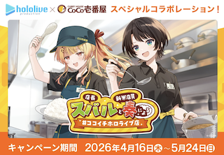 はいっ、週末です。週末といいえば、その通り!ココイチネタで。いよいよ期間限定ネタも尽きてきました。いつまでもつか分かりませんが引っ張ります。諸事情によりカレーを食べにいけていません。今週はキャンペーンの紹介でお茶を濁します。今回ご紹介するのは「ココイチホロライブ店」です。セットメニューで景品がもらえるキャンペーンです。「参加いただいた方から抽選で限定グッズがGETできるチャンス!ここでしか体験できない特別なコラボキャンペーン」ということです。私は諸事情により食べにいけませんが、皆様にはぜひご参加いただきたいと思います。